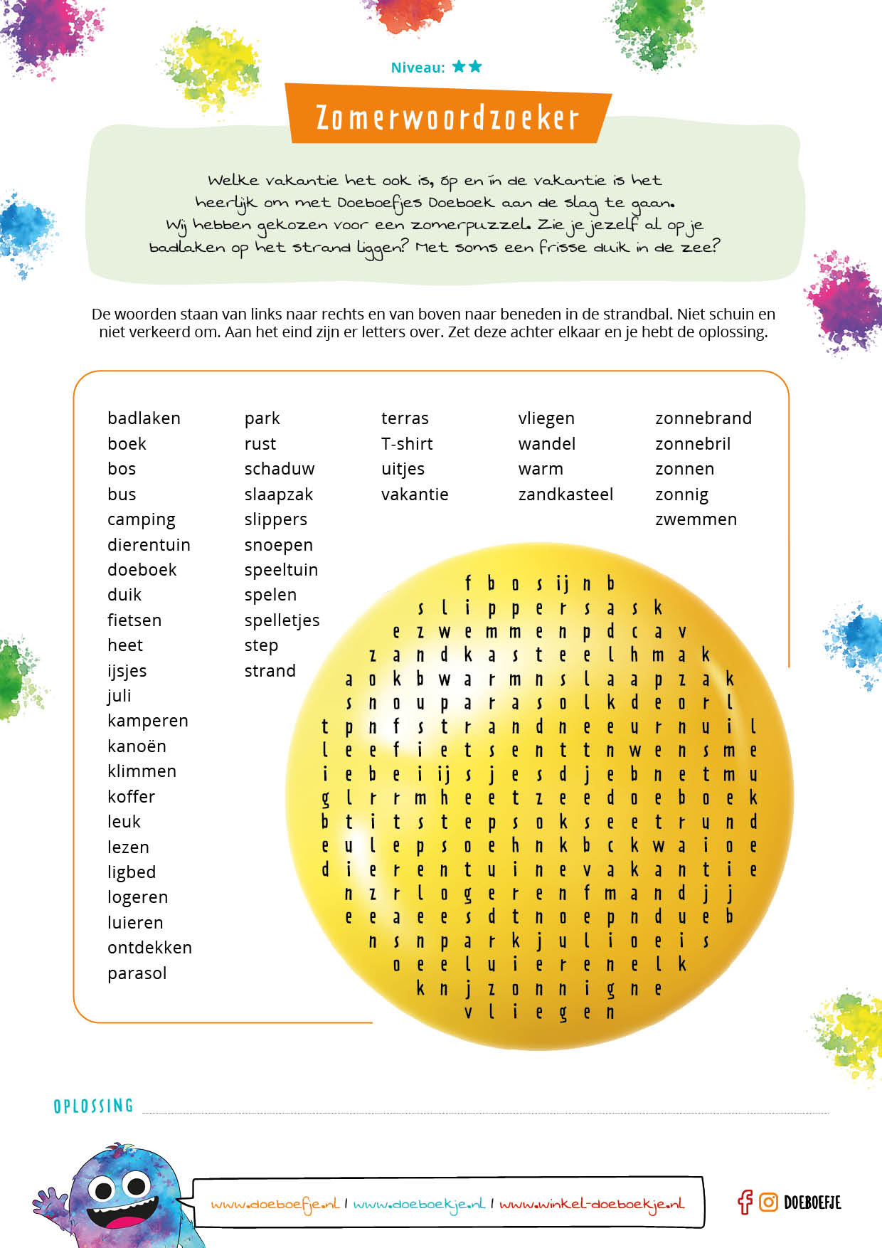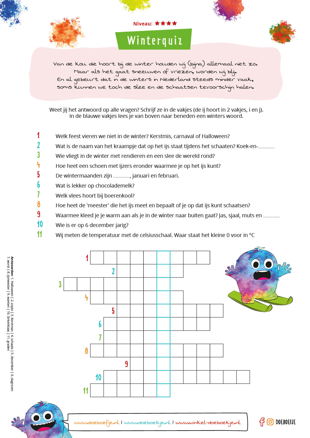 Alles wat-kast Doeboefje heeft zijn kast opgeruimd en heeft nog wat blaadjes gevonden. Hij wil ze graag met jou delen en wenst je er heel veel plezier mee. Puzzel Winterquiz Downloaden WINACTIE Vlinderkunst Downloaden Knutselen Strandjut-tas Downloaden Puzzel Zomerwoordzoeker Downloaden
